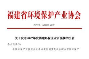 2022年度福建環(huán)保企業(yè)百?gòu)?qiáng)榜發(fā)布,圣元環(huán)保位列第三
