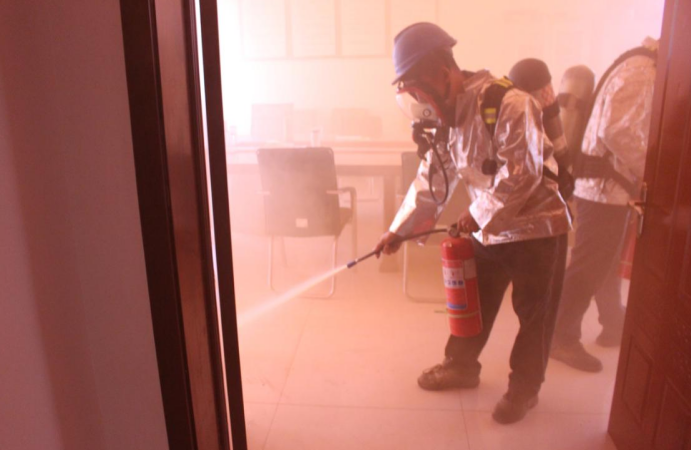 演練模擬辦公場(chǎng)所發(fā)生火災(zāi),有人員被困,巡檢人員發(fā)現(xiàn)并匯報(bào)后,立即啟動(dòng)公司一級(jí)應(yīng)急響應(yīng)。演練過程緊張有序,通過搶險(xiǎn)組、滅火組、救護(hù)組、疏散組、警戒組、保障組、通訊組、評(píng)估組的通力合作,此次消防綜合應(yīng)急救援演練取得了圓滿成功。
