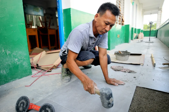 圣元環(huán)保的這一舉措,為學(xué)校加快義務(wù)教育管理標(biāo)準(zhǔn)化,注入了強(qiáng)心劑?!敖酉聛?,學(xué)校將逐步推進(jìn)食堂屋面防水改造、教學(xué)樓墻面維護(hù)等。”陳祥鴻說,為了確保工程進(jìn)度,每天有三個(gè)小組工人分層進(jìn)行施工,教學(xué)樓改造預(yù)計(jì)8月15日前完工,水泥路和擋土墻預(yù)計(jì)8月25日前完工,開學(xué)前就能交付使用。