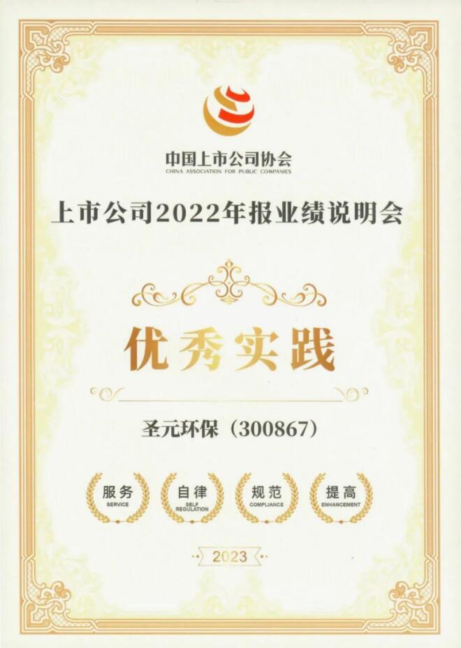 11月29日,中國上市公司協(xié)會(huì)(簡稱“中上協(xié)”)舉辦“上市公司年報(bào)業(yè)績說明會(huì)最佳及優(yōu)秀實(shí)踐”發(fā)布活動(dòng),圣元環(huán)保(300867)榮獲“2022年報(bào)業(yè)績說明會(huì)優(yōu)秀實(shí)踐”。