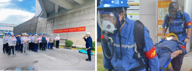 為貫徹落實(shí)6月全國“安全生產(chǎn)月”活動要求,6月25日,泉州圣元精心策劃開展了以檢修人員在滲濾液廊道清淤作業(yè)時發(fā)生中毒暈倒為背景的應(yīng)急演練。