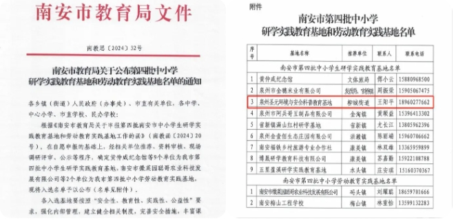 (五)泉州圣元榮獲“南安市第四批中小學(xué)生研學(xué)實(shí)踐教育基地”稱號(hào)