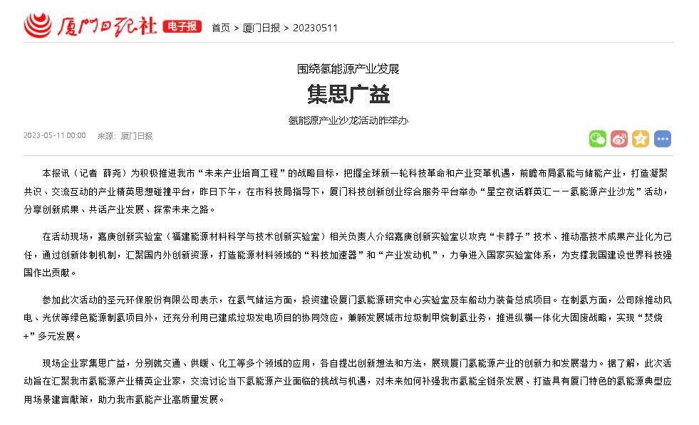 參加此次活動的圣元環(huán)保股份有限公司表示,在氫氣儲運方面,投資建設(shè)廈門氫能源研究中心實驗室及車船動力裝備總成項目。在制氫方面,公司除推動風(fēng)電、光伏等綠色能源制氫項目外,還充分利用已建成垃圾發(fā)電項目的協(xié)同效應(yīng),兼顧發(fā)展城市垃圾制甲烷制氫業(yè)務(wù),推進縱橫一體化大固廢戰(zhàn)略,實現(xiàn)“焚燒+”多元發(fā)展。